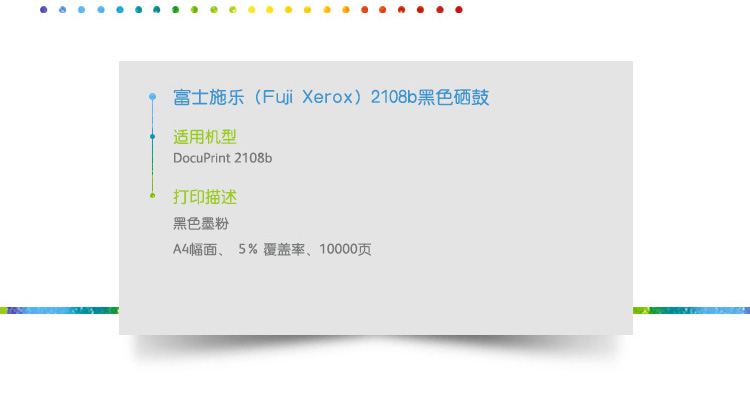 • 商品名稱:富士施樂(Fuji Xerox)CT350999 黑色硒鼓/粉盒 適用于DocuPrint 2108b