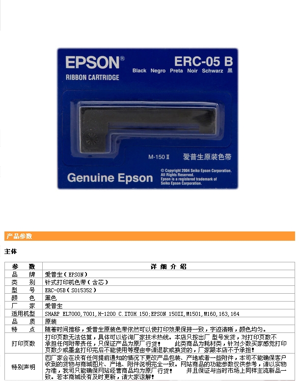 - 商品名稱:愛普生ERC-05色帶框 適用于EL7000,7001,H-1200;EPSON 150Ⅱ,M1501,M160,163,164 (kj)