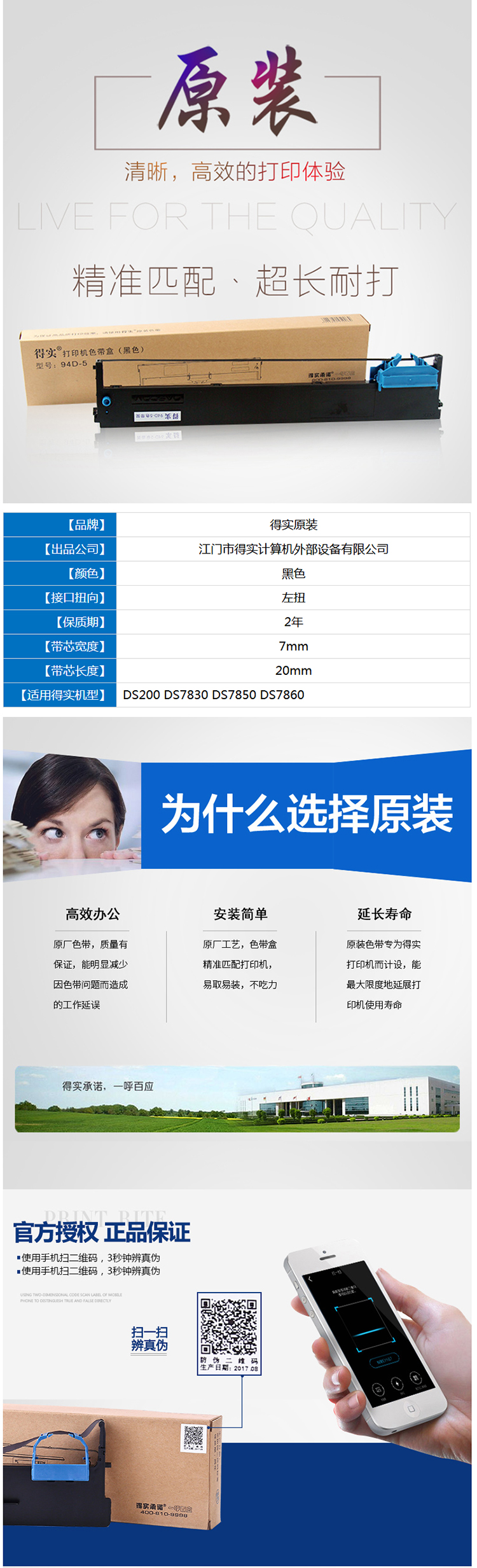 • 商品名稱:得實(shí)94D-5色帶架 黑色 含芯7mm*20m 適用DS200 DS7860 DS7830 (kj)