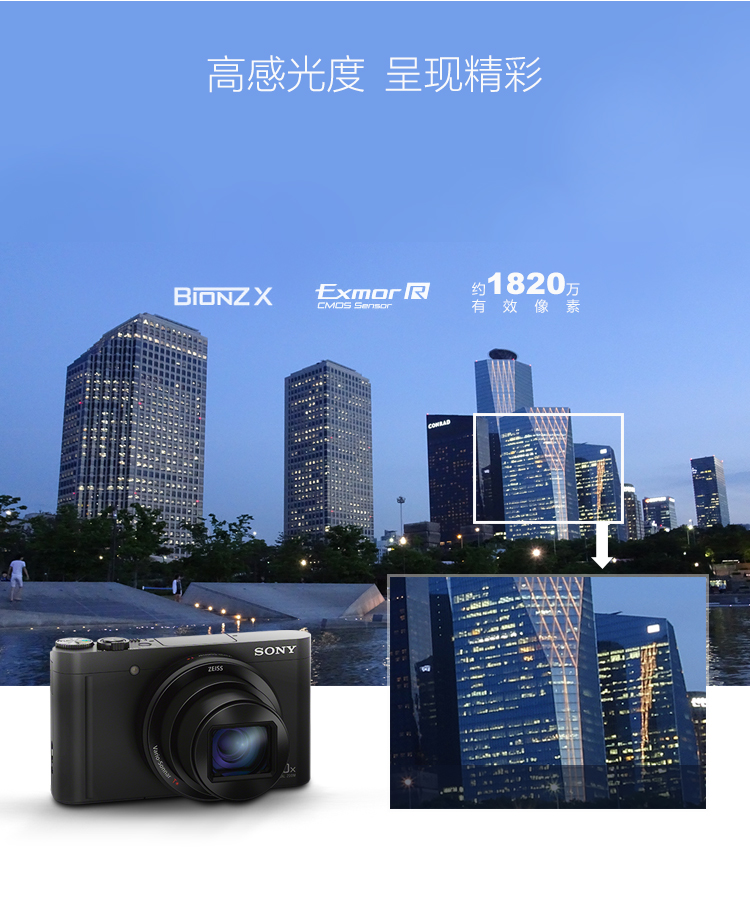 索尼(SONY)DSC-WX500 數(shù)碼相機(jī) 標(biāo)配32G SD卡 相機(jī)包