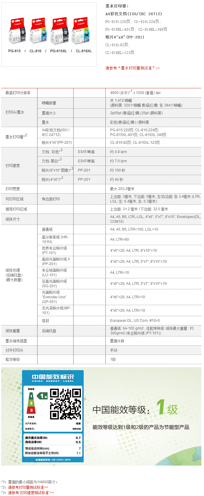 • 打印速度:黑白:7.0ipm 彩色ESAT/單面:約4.8ipm照片:8"×10"照片(PP-201):約100秒,4"×6"照片(PP-201):約40秒