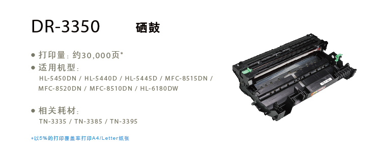 • 型號:兄弟(brother) DR-3350 兄弟(HL-5440D/5445D/5450DN/6180DW/MFC-8510DN/8515DN/8520DN) DR-3350 硒鼓組件