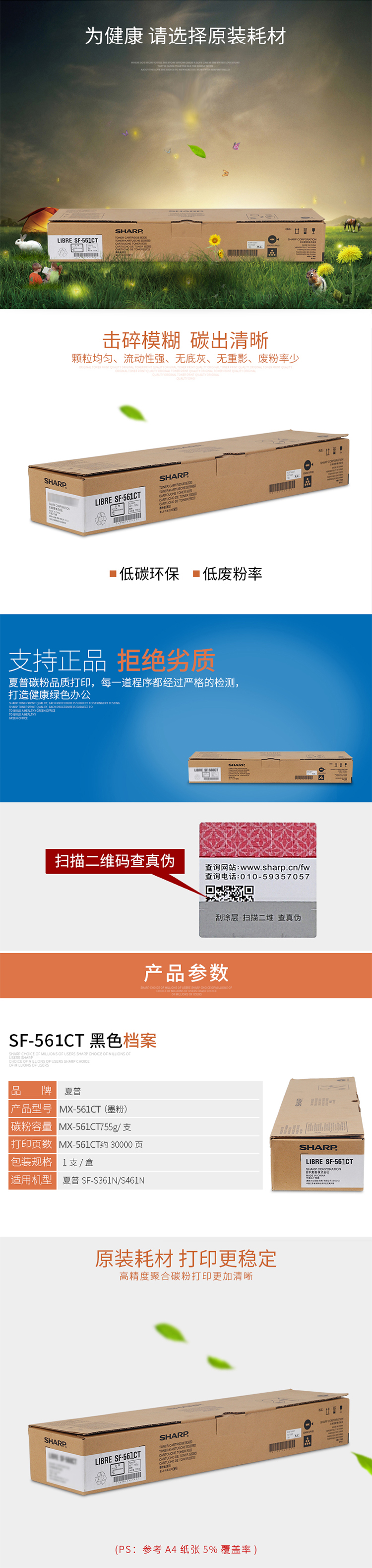 • 商品名稱:夏普(sharp) MX-561CT 粉盒 黑色適用夏普MX-B4621R/4608/4658 黑色 (kj)