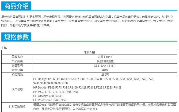 • 商品名稱:惠普(Hp)8816A 816 黑色墨盒 適用于 Deskjet D2468 D2368 D1568 D1558 D1468 D1368 5168 3938 3918 3848 3748 3668 3538 OF4338 4308 打印量280頁 (kj)