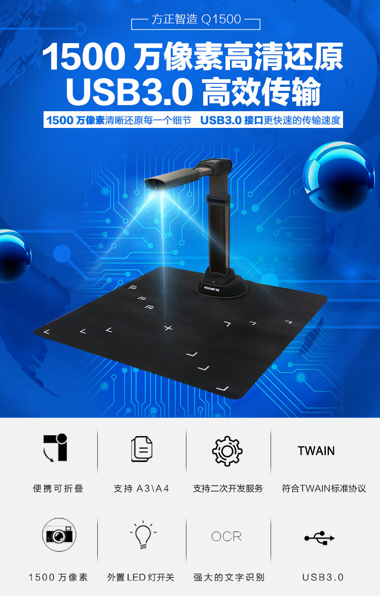 • 商品名稱:方正(Founder)Q1500高拍儀 A3掃描儀 1500萬(wàn)像素
