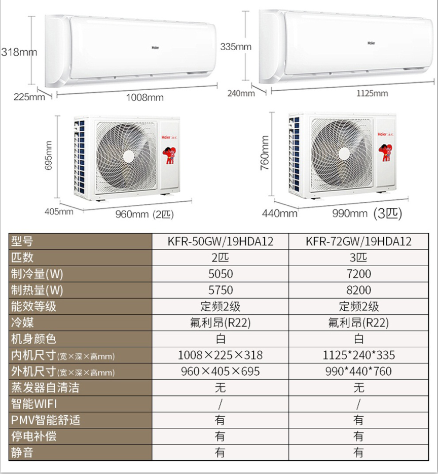 - 商品名稱:海爾/Haier 定頻單冷3P掛機(jī)KF-72GW/19HDA12 空調(diào) 2級能效
