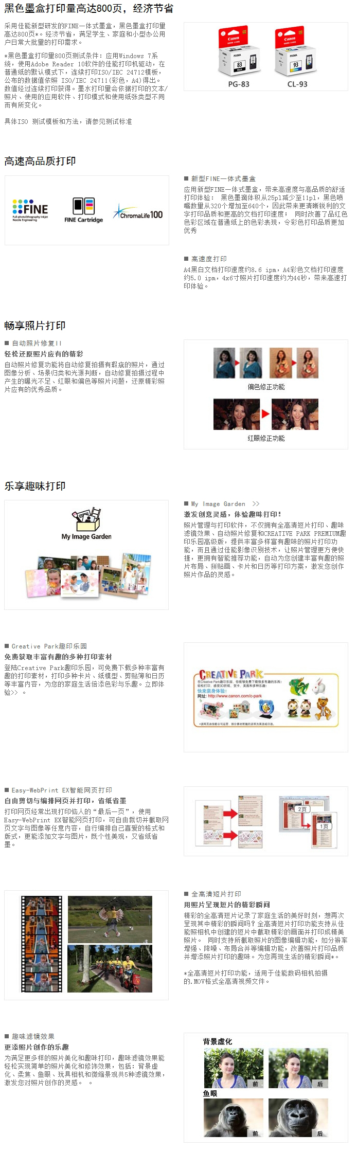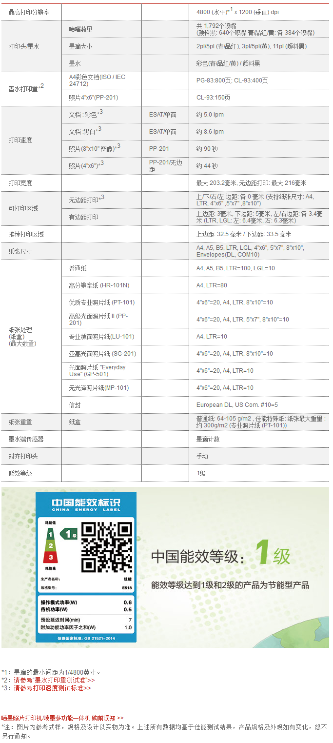 • 打印速度:黑白:8.6ipm彩色:約5.0ipm其它打印速度:8"×10"照片(PP-201):約90秒,4"×6"照片(PP-201/無邊距):約44秒