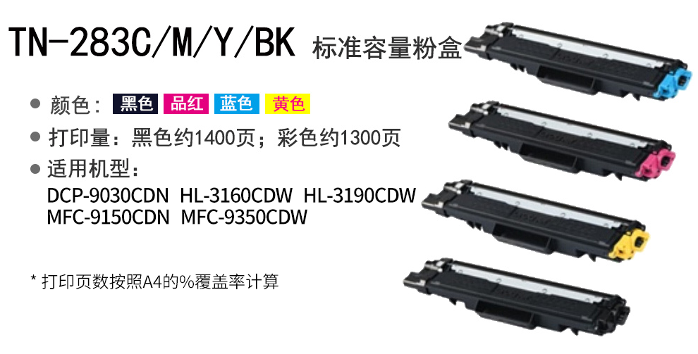 兄弟(brother)TN-283粉盒TN-283BK黑色(約1400頁(yè)) 適用于DCP-9030CDN HL-3160CDW HL-3190C