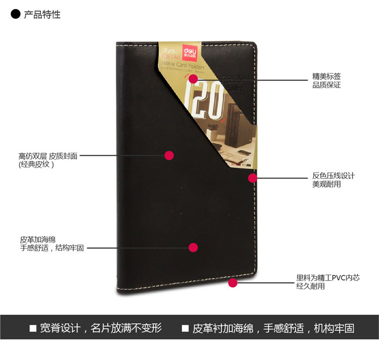 • 商品名稱:得力(deli)60袋(120枚)皮面攤開式名片冊 男女便攜名片夾 5791
