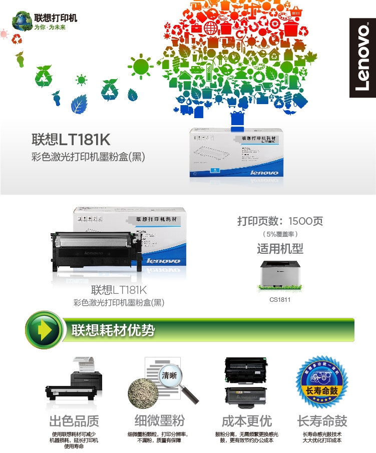 聯(lián)想(Lenovo)LT181Y 黃色原裝墨粉(適用于CS1811打印機(jī))(kj)