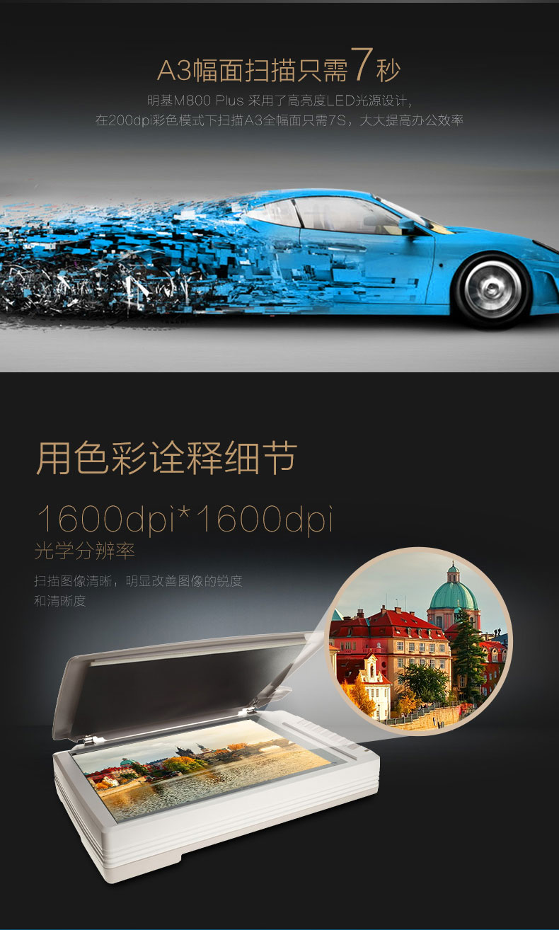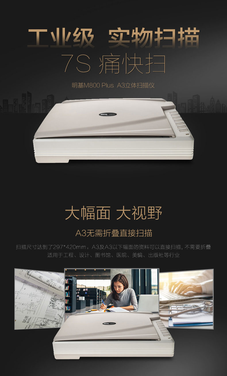 • 商品名稱:明基(BenQ)M800 PLUS平板式A3掃描儀 CCD大型彩色平板掃描儀