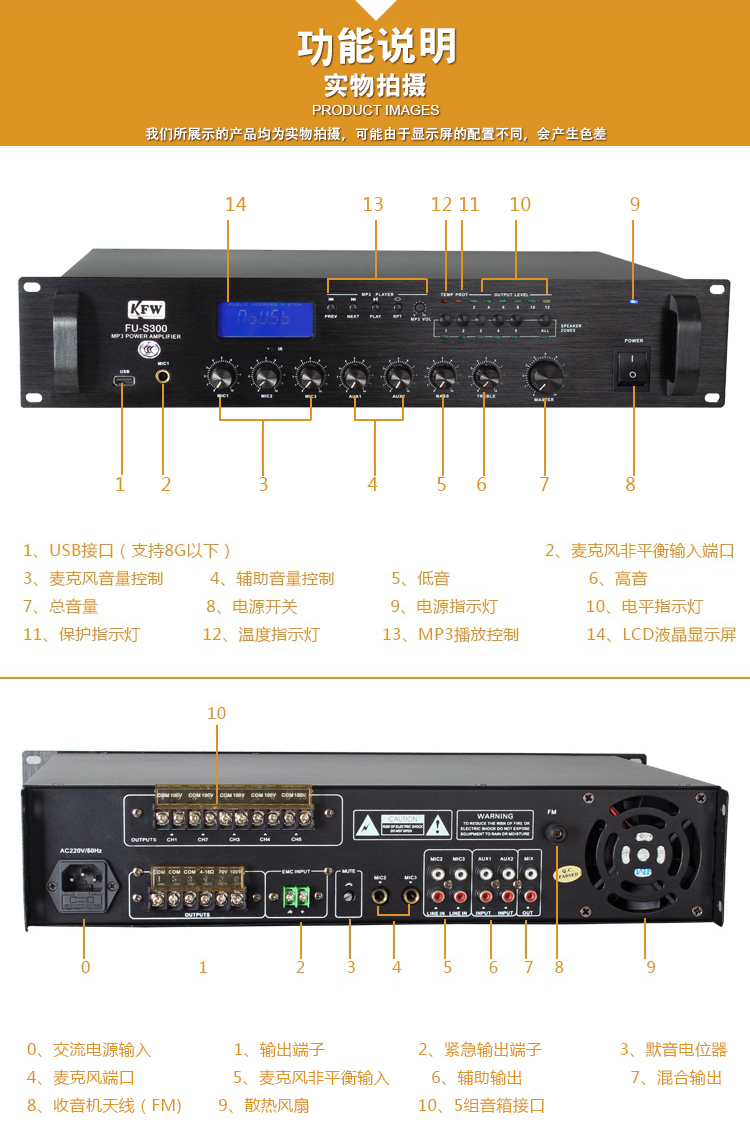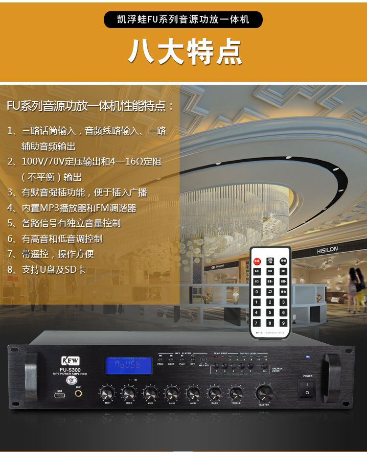 • 商品名稱:凱浮蛙(KFW) 功放FU-S400 定壓功放 公共廣播功放 五分區(qū)功放