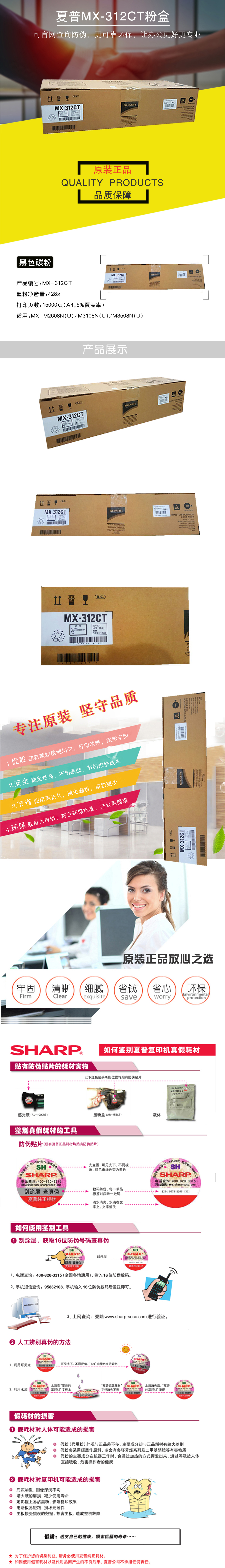 • 商品名稱:夏普(SHARP)MX-312CT 原裝墨粉盒 適用MX-M2608/3108/3508系列型號(kj)