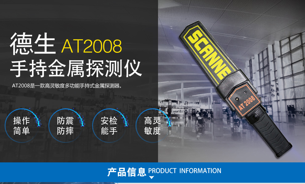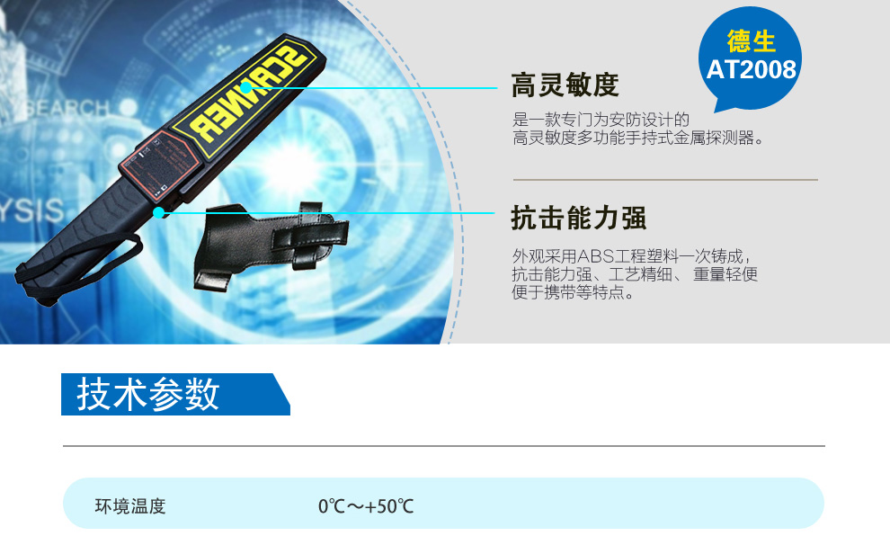 德生(Tecsun) AT2008型高靈敏度 金屬探測器 金屬探測儀 手持安檢儀 安檢棒 配充電電池+充電器