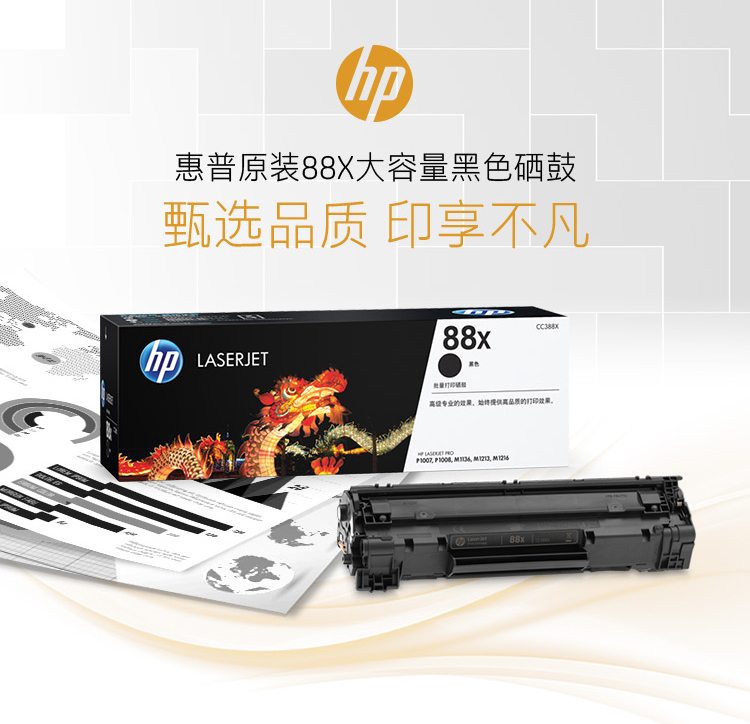 惠普(HP)CC388X 大容量黑色硒鼓 88X 適用于: 1108 1106 M1213 1216 1136 M202, M226系列M126 M128系列等 (kj)