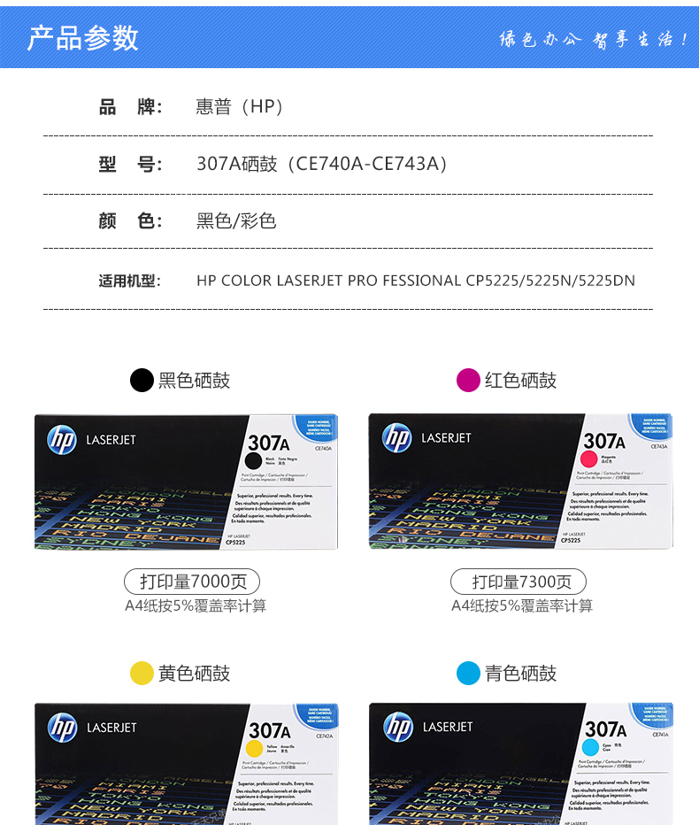 • 型號:惠普(HP)740 740A 307A 原裝激光打印硒鼓原裝適用5225/5225N/5225DN 黑色 CE740A 約7000頁