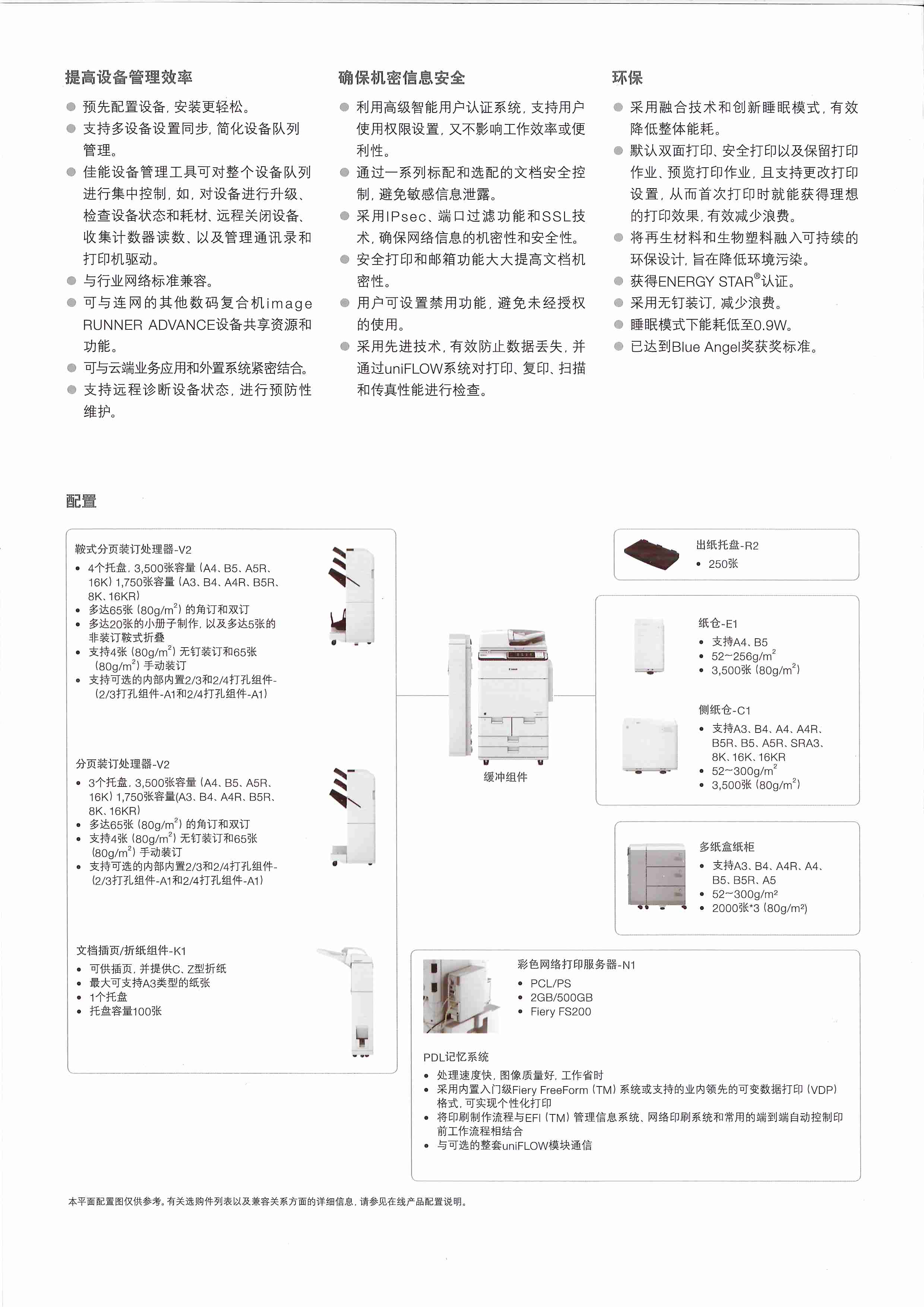 佳能 IR-ADV C7580復合機(含鞍式騎馬裝訂器/緩沖區(qū)組件/6年全包服務(wù))【基本費用前5年按56148元/半年收取、第6年按21000元/半年收?。ò肽臧『诎?0萬張、彩色1.8萬張)。合計12期收費?;举M用每半年預收,半年后收取超出的費用及下半年的基本費用】(超出部分的費用是不確定值,每張按黑白0.04元、彩色0.50元收取,客戶另行結(jié)算,沒計入本合同總價內(nèi)。)