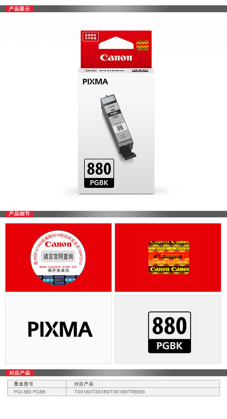 • 型號(hào):PGI-880 PGBK