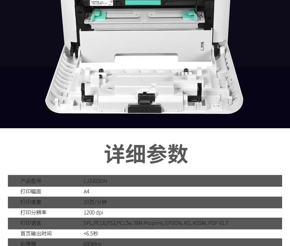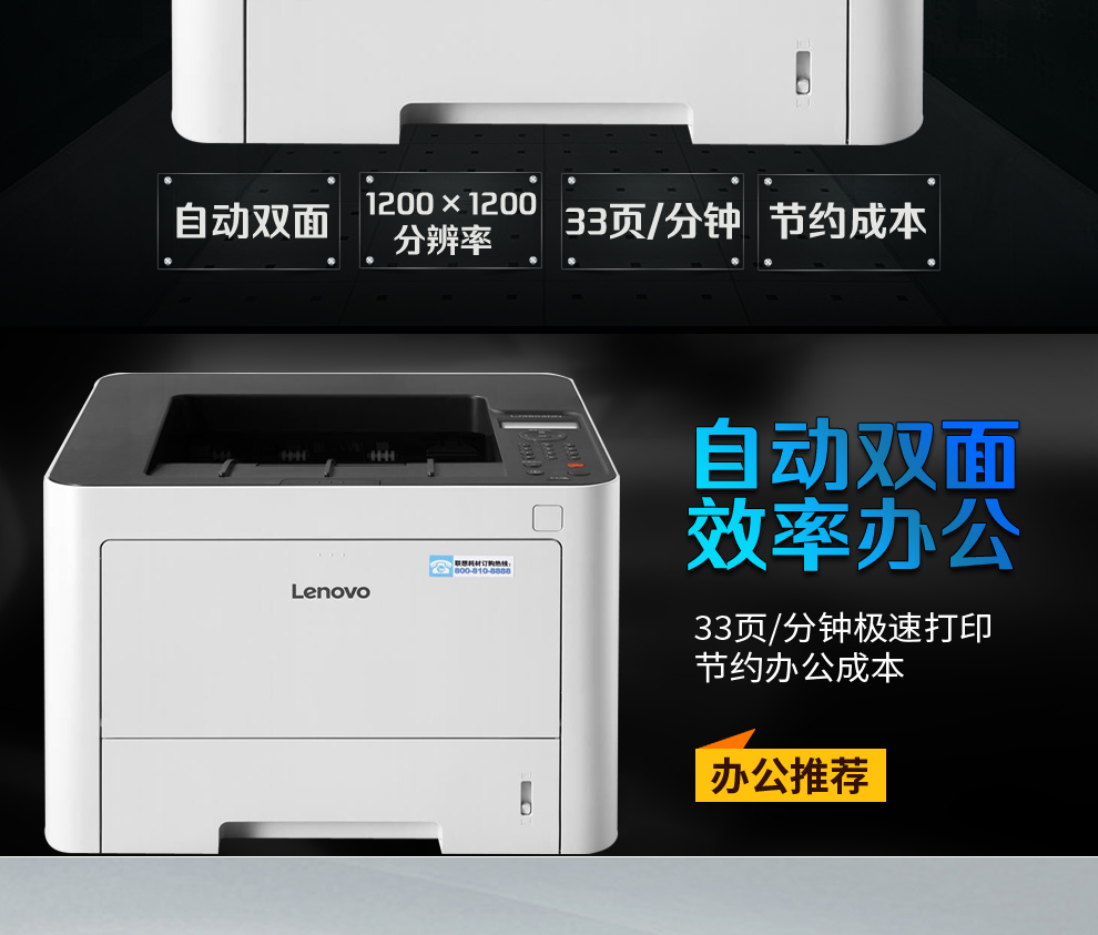 聯(lián)想(Lenovo)LJ3303DN A4黑白激光打印機(jī)/有線網(wǎng)絡(luò)/自動(dòng)雙面(33頁(yè)/分鐘)分辨率:1200×1200dpi 適用型號(hào)LT333/LT333H 粉盒