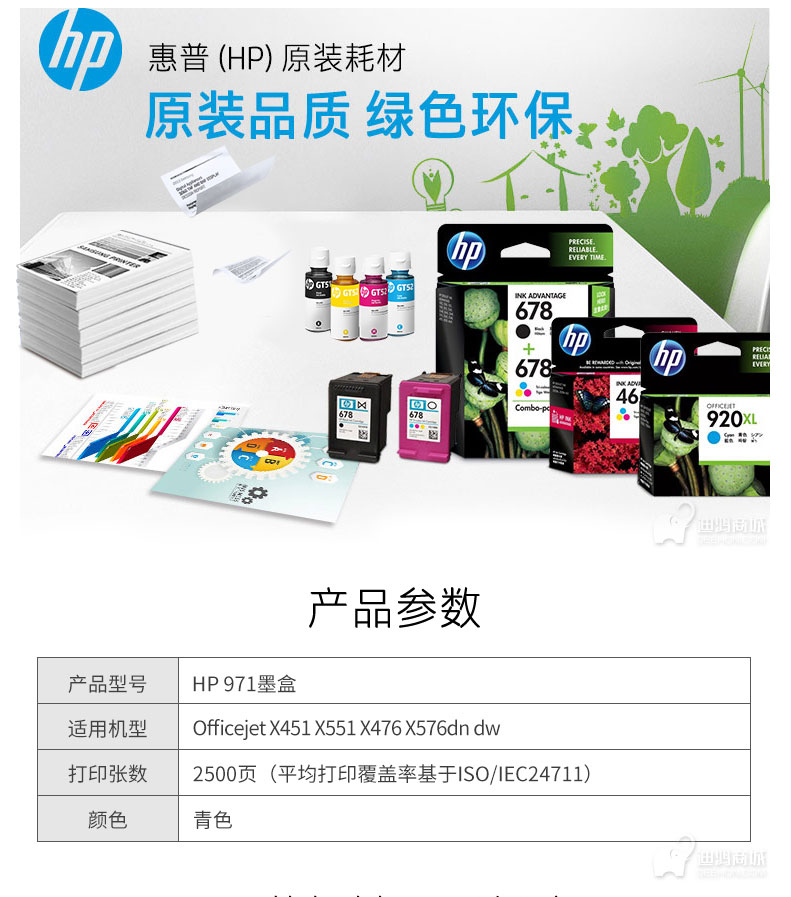 • 商品名稱:惠普(HP)971墨盒CN622AA 適用x451dw x551dw x476dw x576dw藍色墨盒 HP 971