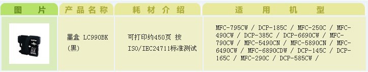 • 型號:LC990BK 黑色墨盒