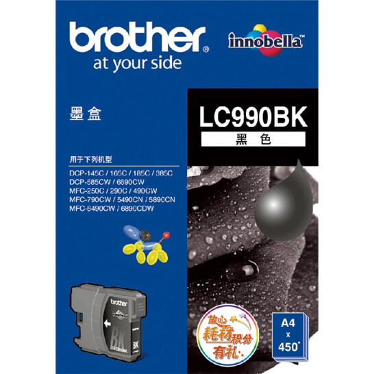 兄弟 墨盒 LC990BK 黑色 適用于(MFC-795CW/DCP-185C/MFC-250C/MFC-490CW/DCP-385C/DCP-6690CW/MFC-790CW/MFC-5490CN/MFC-5890CN/MFC-6490CW/MFC-6890CDW/DCP-145C/DCP-165C/MFC-290C/DCP-585CW)(kj)