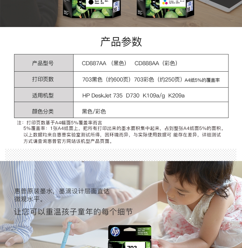 惠普(HP)CD887AA 703號(hào) 黑色墨盒 703 適用于hp Deskjet 735 d730 k109a/g k209a (kj)