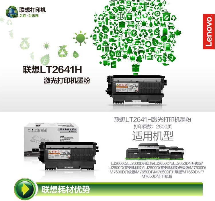 • 商品名稱:聯(lián)想(lenovo)LT-2641H 大容量粉盒 適用于LJ2600D/LJ2650DN/M7600D/M7650DF/M7650DNF 可打印2600頁 (kj)