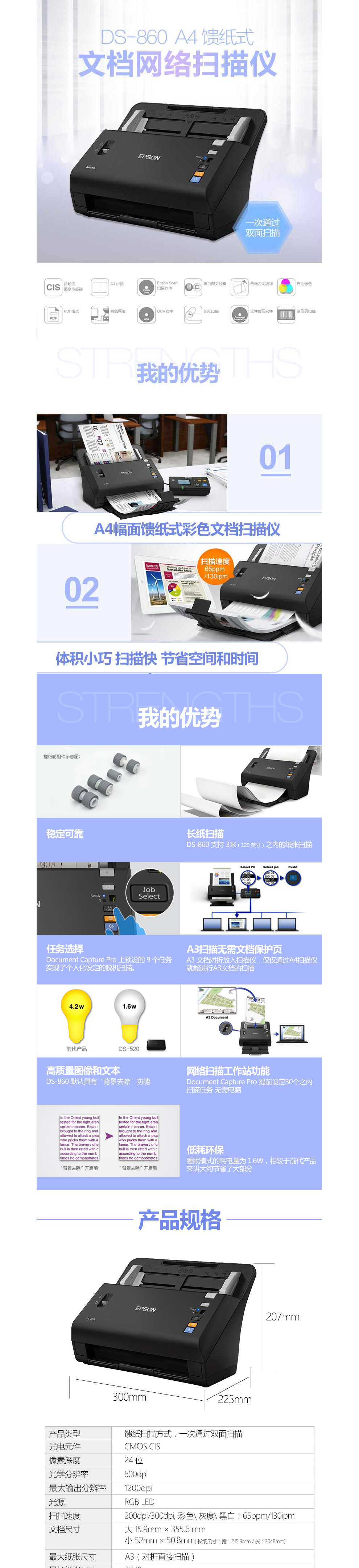 • 商品名稱:愛普生(EPSON)DS-860 A4饋紙式高速彩色文檔掃描儀