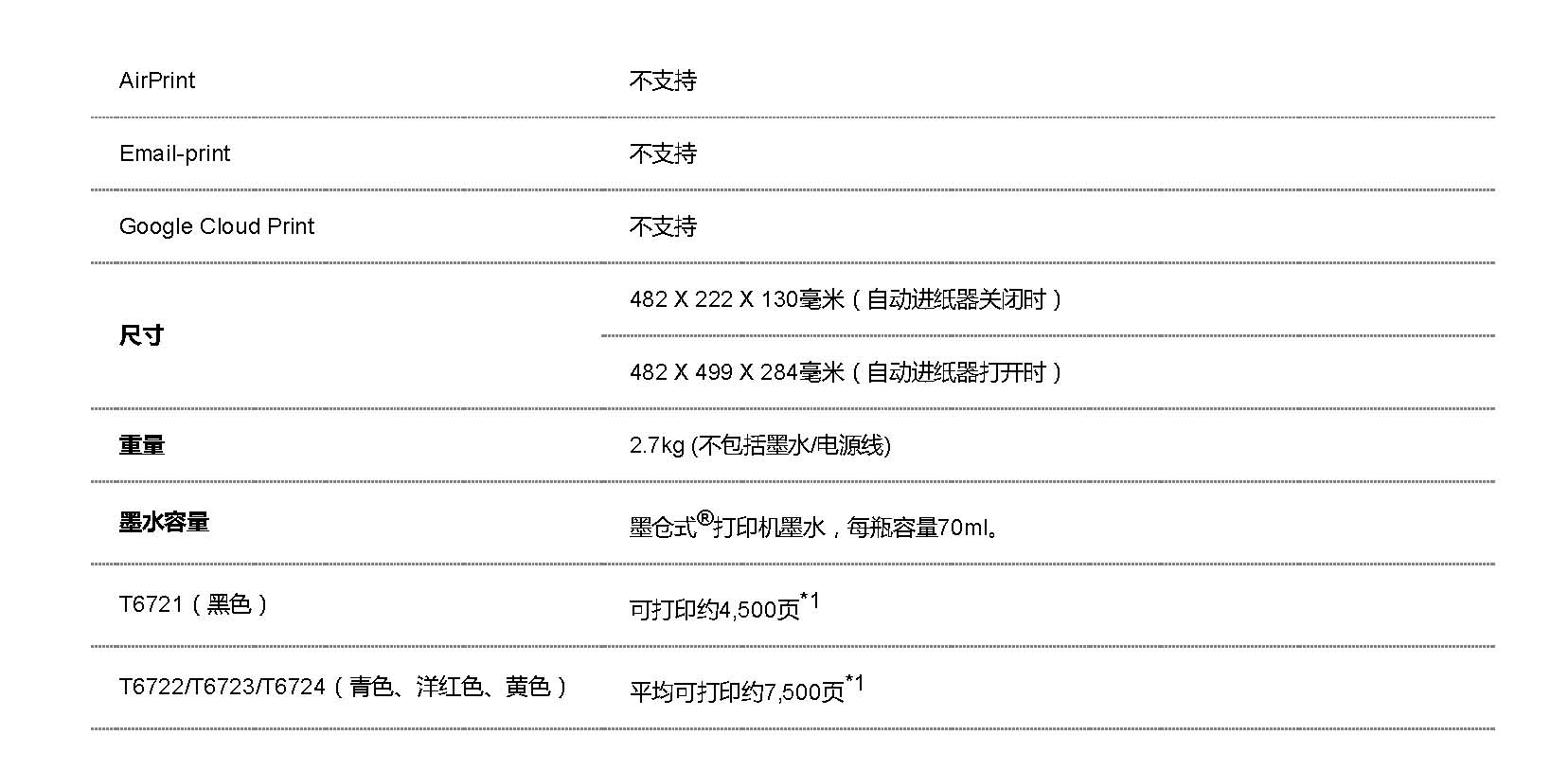 • 商品名稱:愛普生(EPSON) L130 噴墨打印機 A4幅面 不支持網絡打印 黑色約27ppm彩色約15ppm