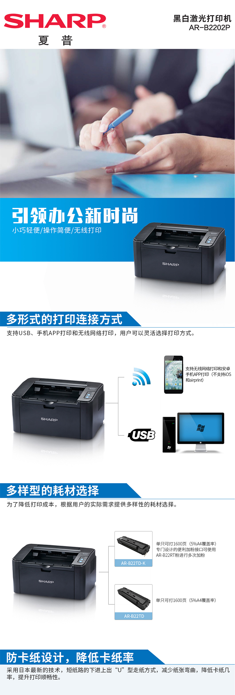 - 商品名稱:夏普(SHARP)AR-B2202P A4黑白激光打印機(jī) 支持無線打印
