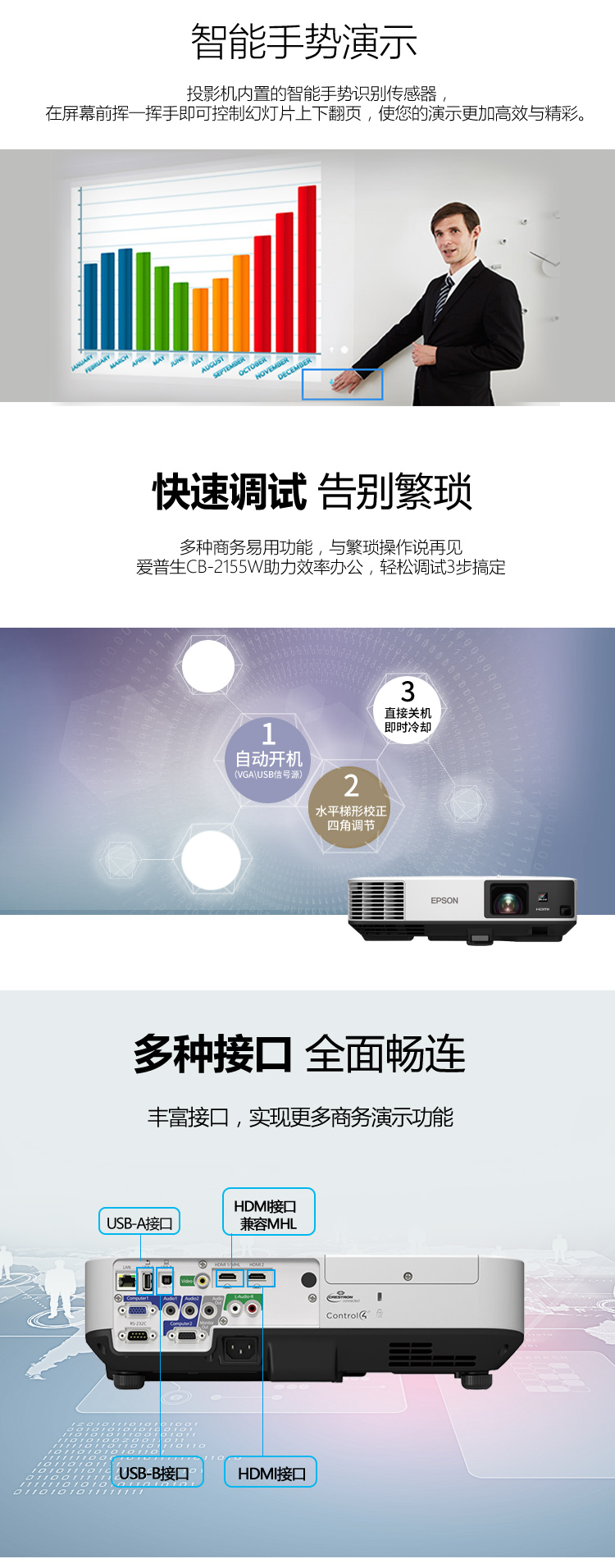 • 商品名稱:愛普生(EPSON)CB-2155W 高清商務(wù)工程投影機 5000流明 UHE燈泡光源 3LCD技術(shù) 高對比度 白色/手動變焦/1280X800dpi/30-300英寸