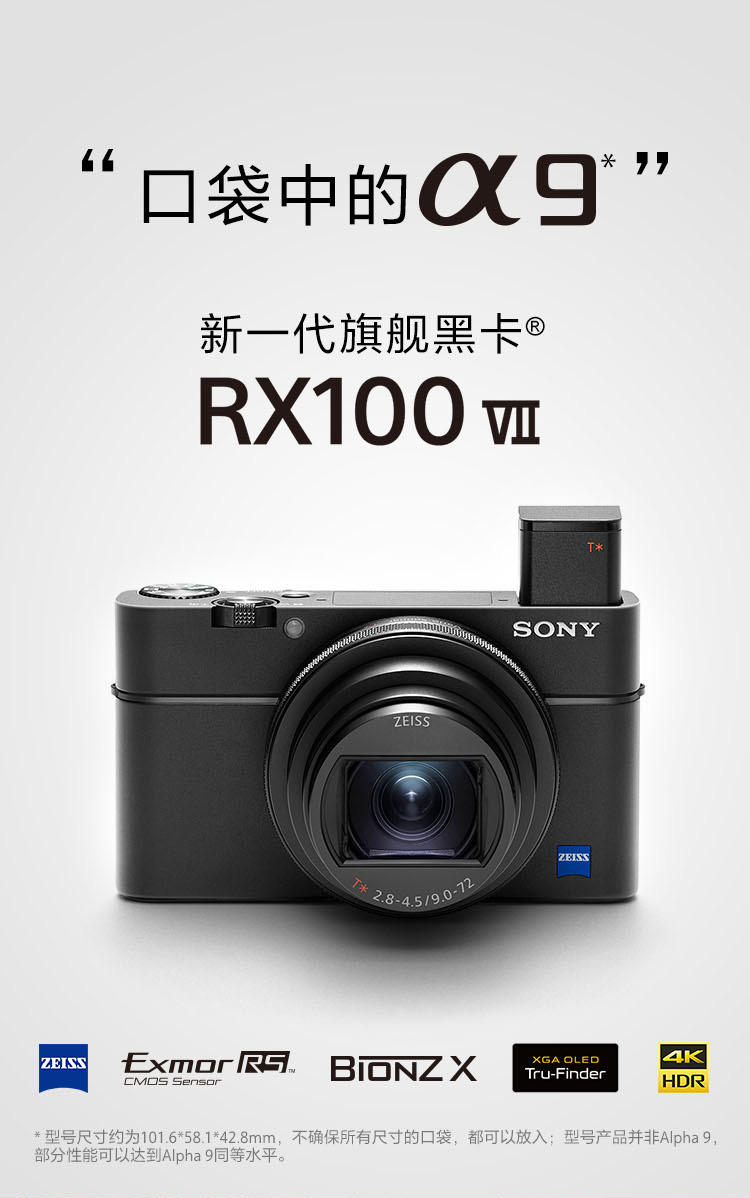 索尼(SONY)DSC-RX100M7 黑卡數(shù)碼相機(jī)(24-200mm蔡司鏡頭 實(shí)時(shí)眼部對(duì)焦 4K HDR視頻 RX100 VII/黑卡7)