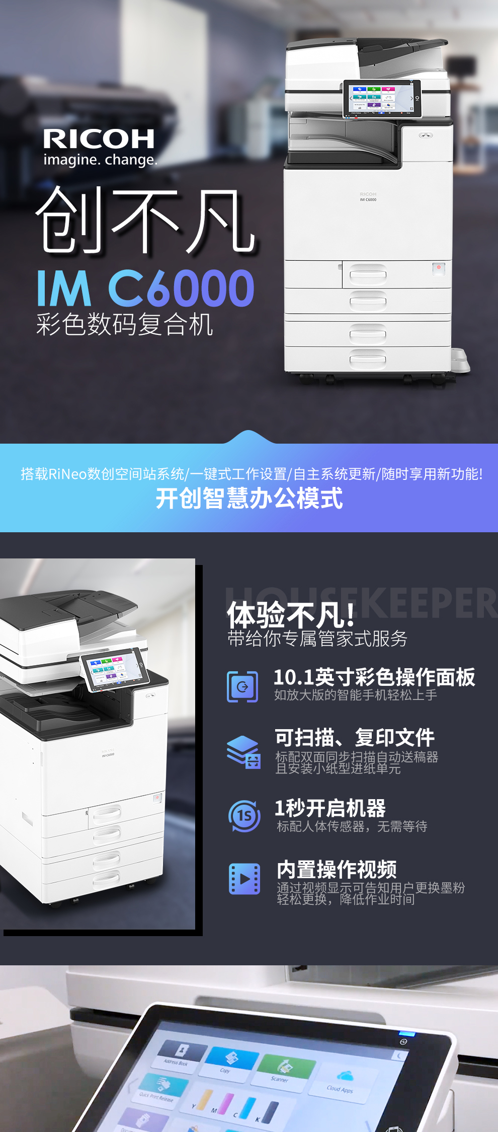 理光(Ricoh)IM C6000 A3彩色多功能數(shù)碼復(fù)合機(jī)(主機(jī)+送稿器+四紙盒+1000頁(yè)小冊(cè)子裝訂器)