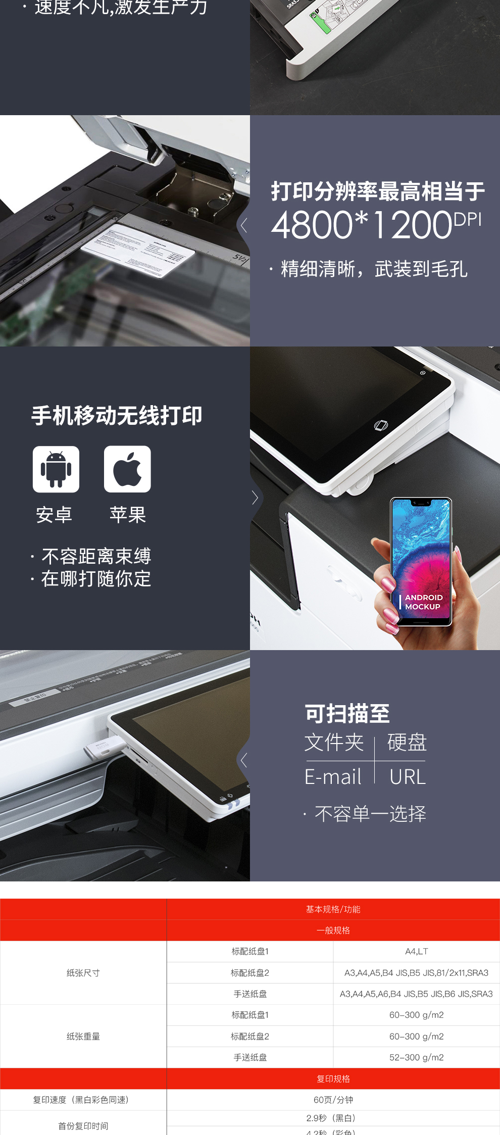 • A4復(fù)印速度(彩色):60頁(yè)/分鐘