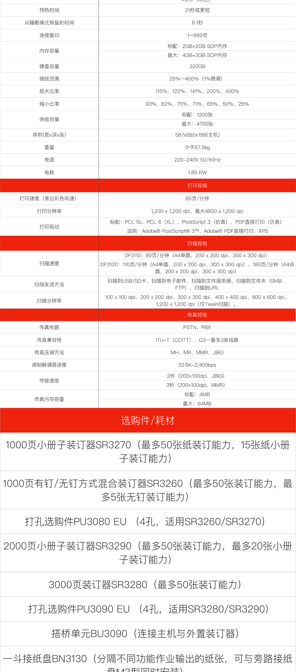 • 掃描速度:DF3110:80頁(yè)/分鐘(A4單面,200 x 200 dpi、300 x 300 dpi), DF3120:110頁(yè)/分鐘(A4單面,200 x 200 dpi、300 x 300 dpi),180頁(yè)/分鐘(A4雙面,200 x 200 dpi、300 x 300 dpi)