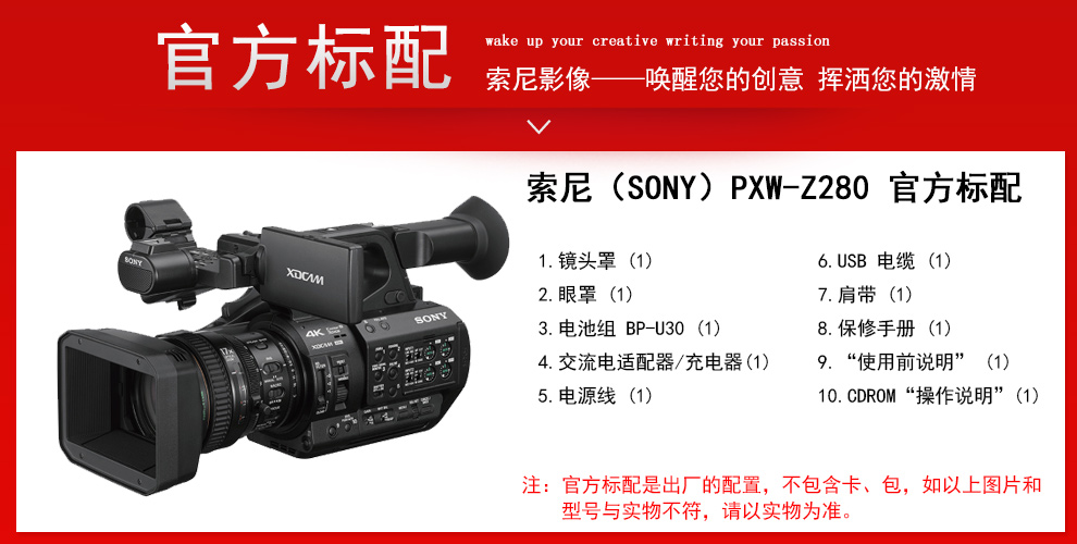 • 商品名稱(chēng):索尼(SONY) PXW-Z280 手持式4K高清攝錄一體機(jī)(含原裝包*1+電池*2+攝影機(jī)補(bǔ)光燈*1+機(jī)頭麥克風(fēng)*1+128G高速內(nèi)存卡*1+讀卡器*1)