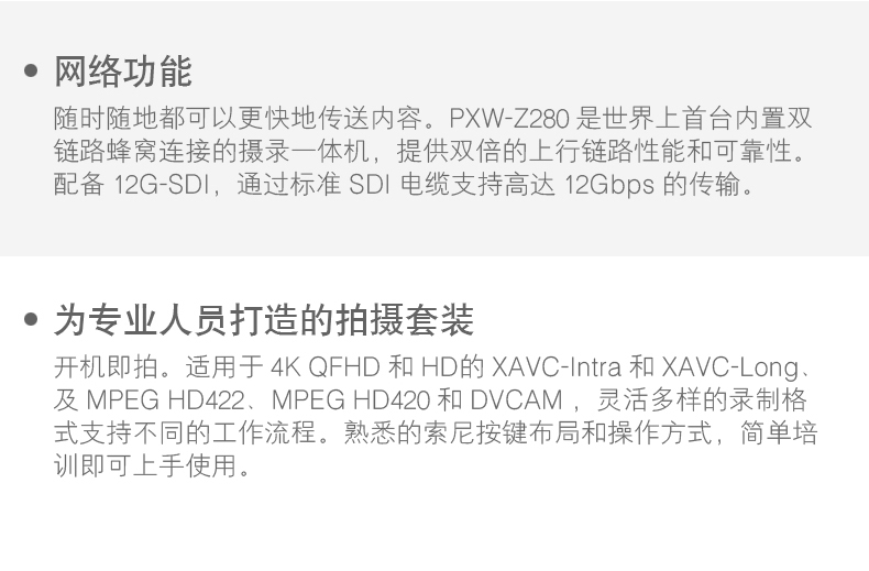索尼(SONY) PXW-Z280 手持式4K高清攝錄一體機(jī)(含原裝包*1+電池*2+攝影機(jī)補(bǔ)光燈*1+機(jī)頭麥克風(fēng)*1+128G高速內(nèi)存卡*1+讀卡器*1)