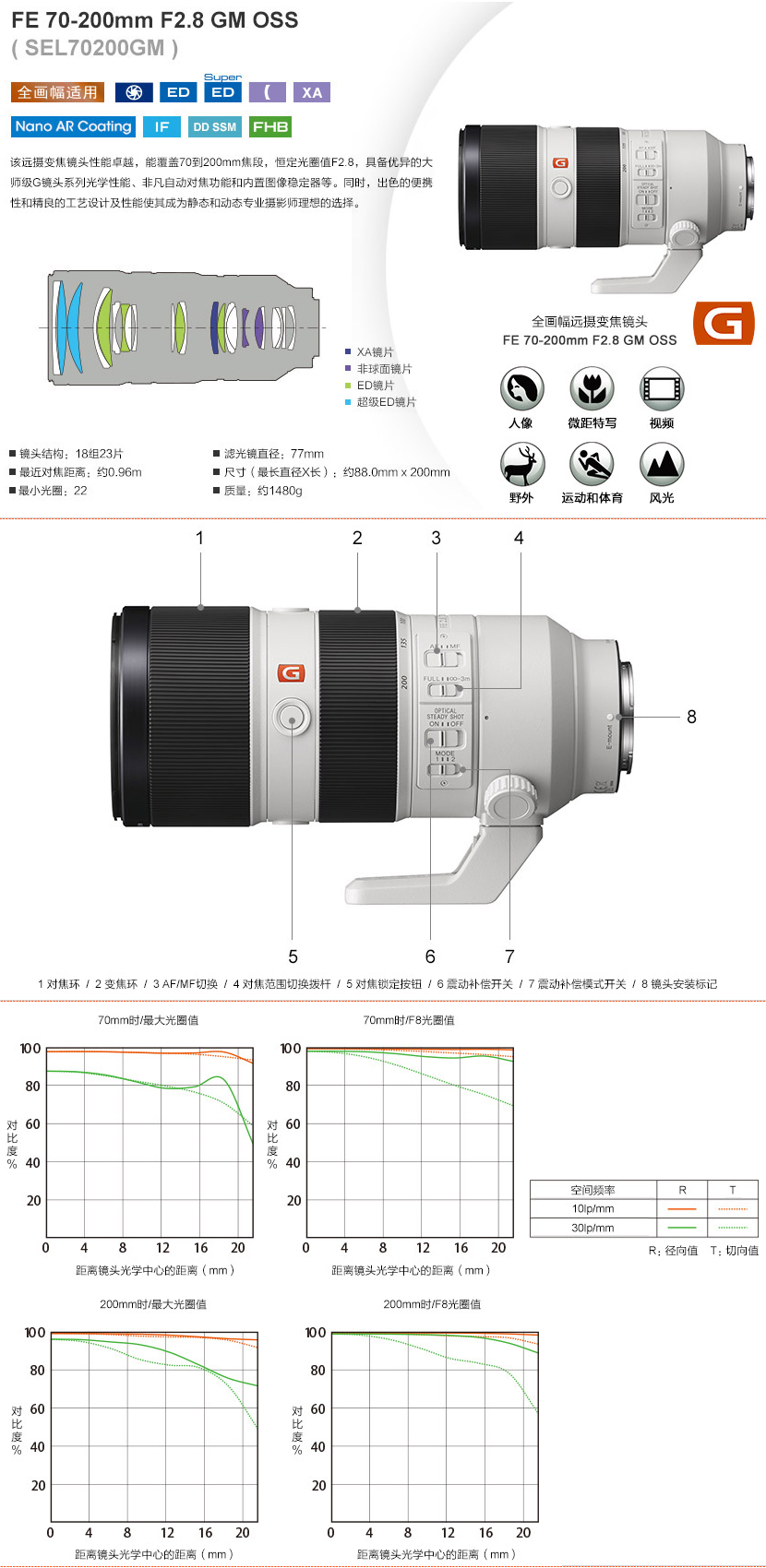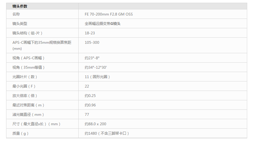 • 商品名稱:索尼(SONY)FE 70-200mm F2.8 GM OSS 全畫幅遠攝變焦G大師鏡頭 E卡口(SEL70200GM)