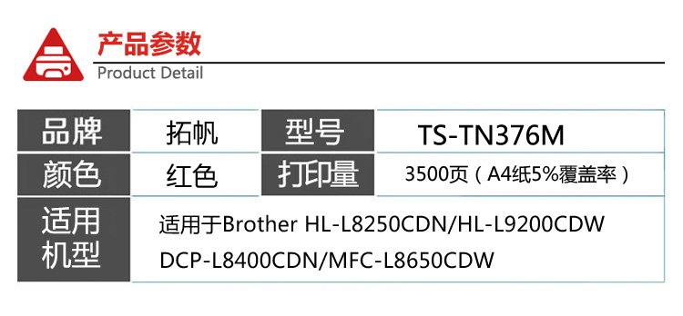 • 商品名稱:拓帆TS-TN376M打印機(jī)硒鼓適用于兄弟MFP-L8650CDW