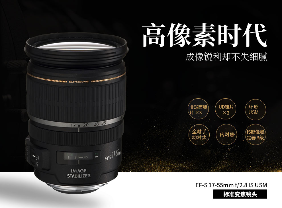 佳能(Canon)EF-S 17-55mm f/2.8 IS USM 黑色 標(biāo)準(zhǔn)變焦鏡頭 一年保修