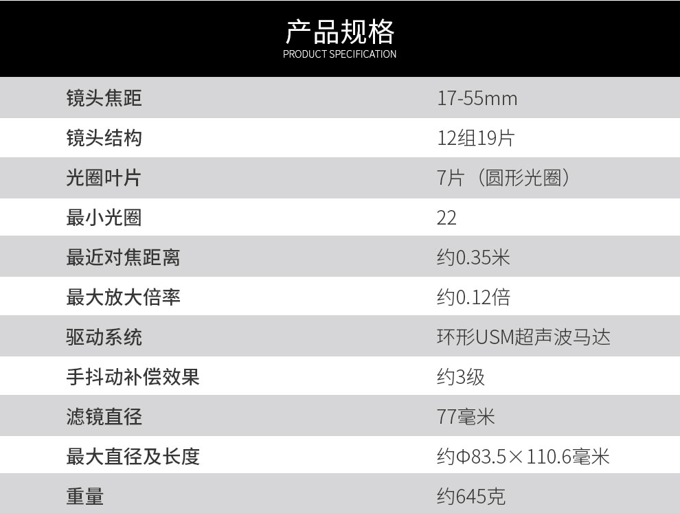 • 型號:EF-S 17-55mm f/2.8 IS USM