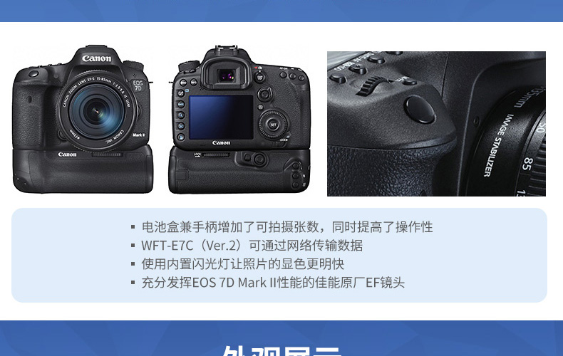 • 商品名稱:佳能(Canon)EOS 7D Mark II (含Wi-Fi適配器 W-E1)單反相機(jī) 含原裝EF-S 60mm f/2.8 USM微距鏡頭/EF-S 35mm f/2.8 IS STM微距鏡頭