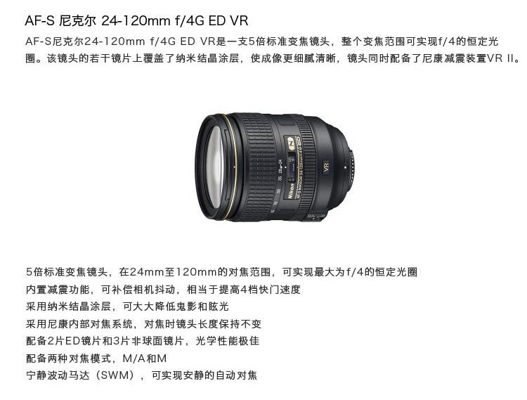 • 商品名稱:尼康 24-120鏡頭 AF-S 尼克爾 24-120mm f/4G ED VR