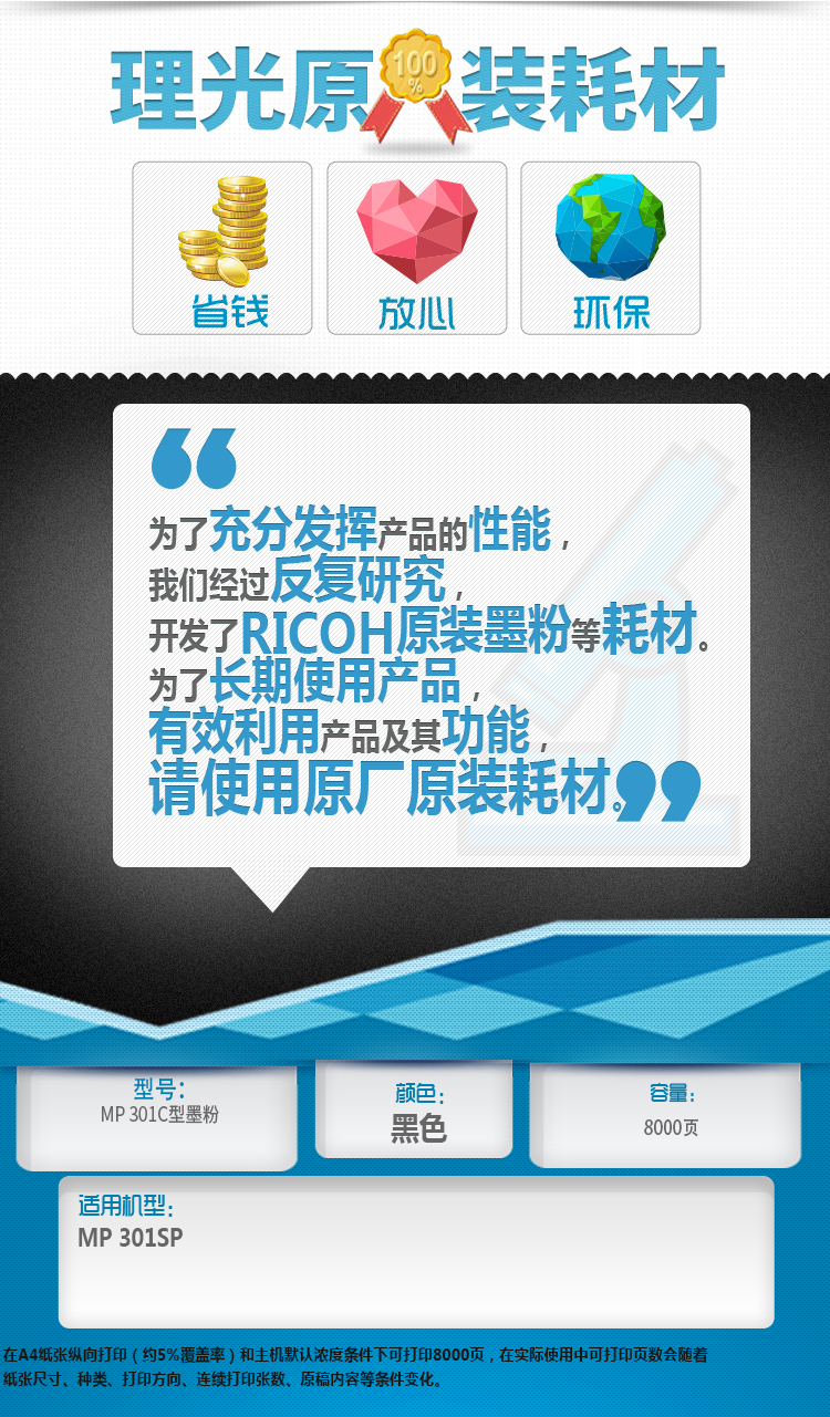 • 商品名稱:理光(Ricoh)碳粉MP301C型 適用于MP 301SP