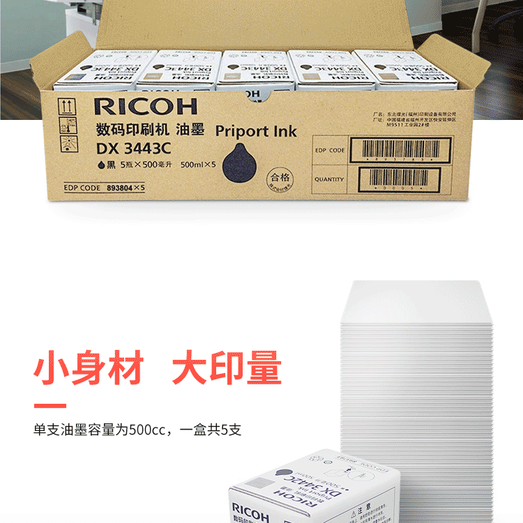 • 商品名稱:理光(Ricoh)DX3443C(500cc/瓶)黑油墨 適用于DX3443C/DD3344C