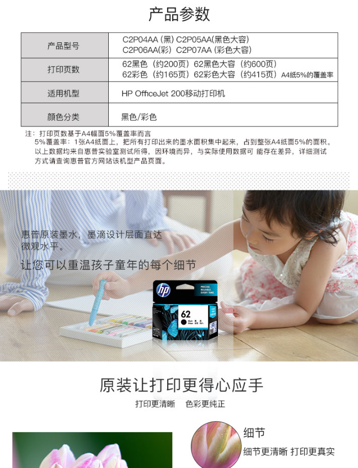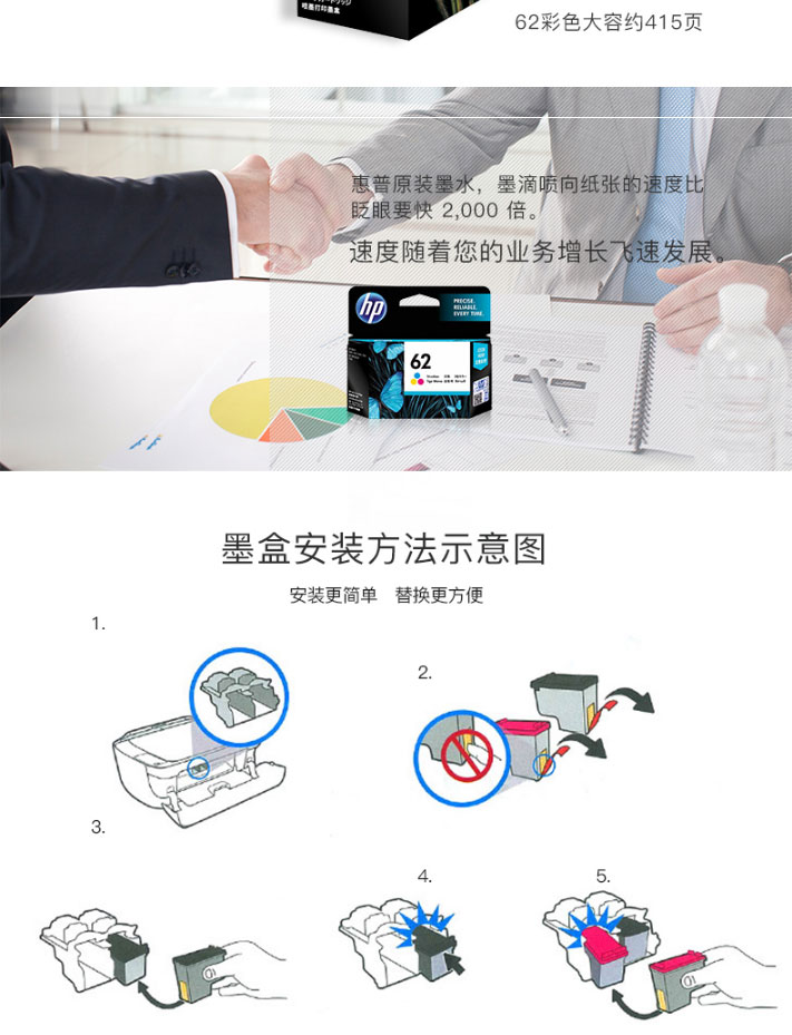 • 商品名稱:惠普(HP)62黑彩墨盒一套/62墨盒 適用于HP OfficeJet 200 移動打印機