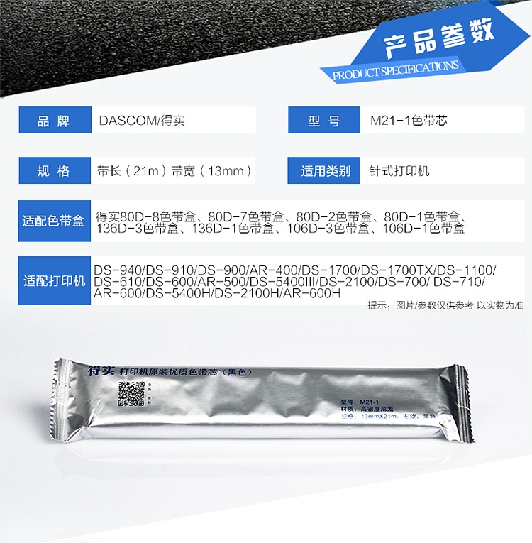 • 商品名稱:得實(shí)(Dascom)M21-1 原廠色帶芯適用于DS1700 DS1100 DS2600II