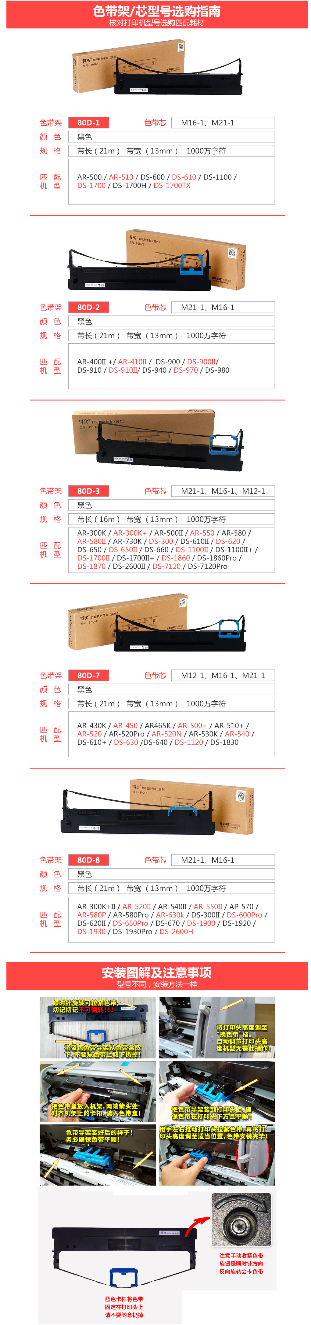 得實 DASCOM 色帶框/色帶架 80D-3 (黑色) 適用于DS2600II/DS300/DS1100II/DS1100II+/DS1700II/DS1860/DS7120/1870/AR550/DS610II/DS620/DS-1700+/AR-730k/DS-660/DS-1700II+/DS-650II/DS620/DS1700II+