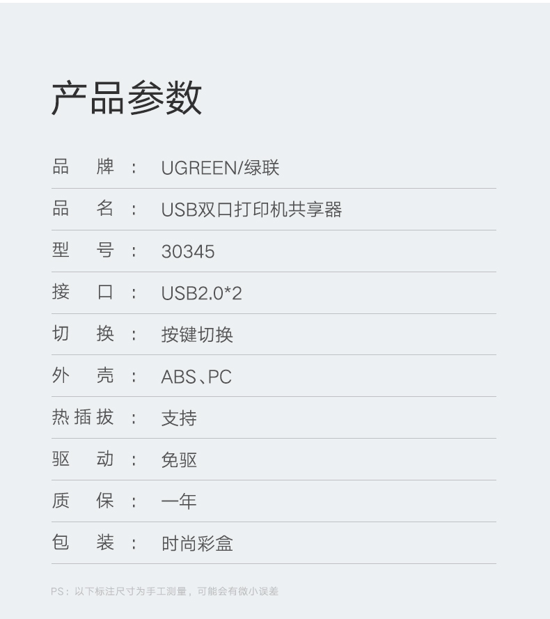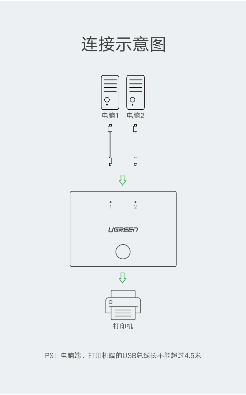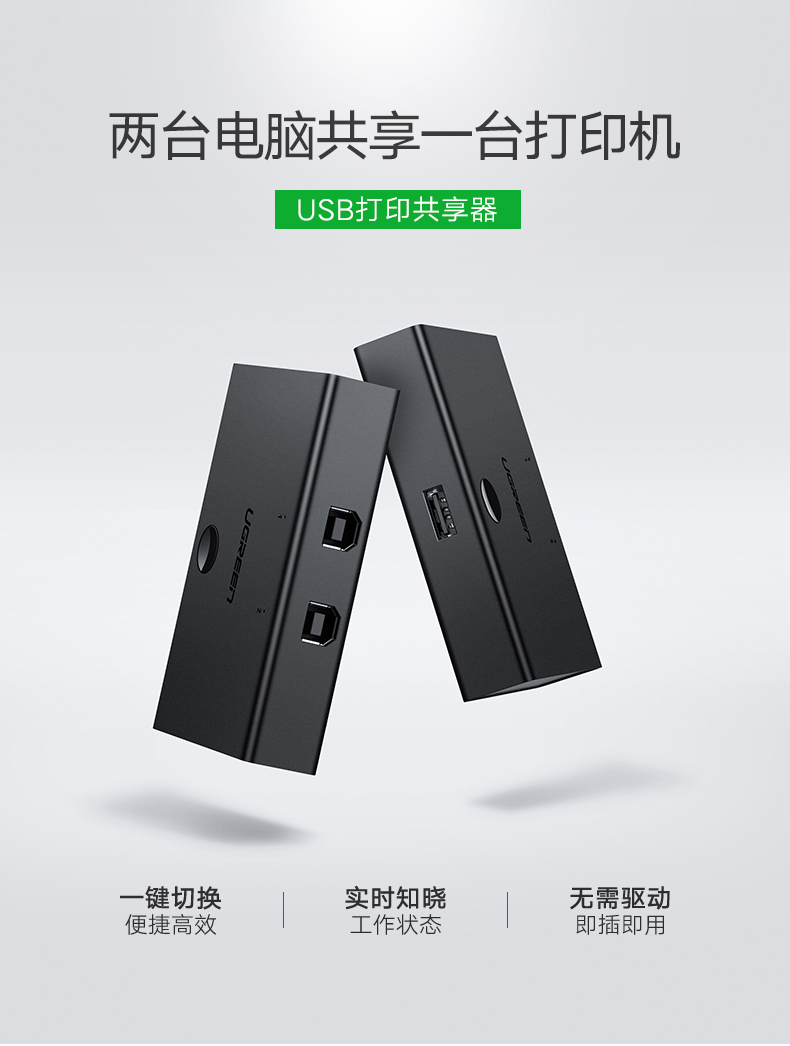 • 商品名稱:綠聯(lián) USB打印機(jī)共享器 二進(jìn)一出切換器 2進(jìn)1出 臺(tái)式機(jī)筆記本電腦接鼠標(biāo)鍵盤U盤共享2口轉(zhuǎn)換器
